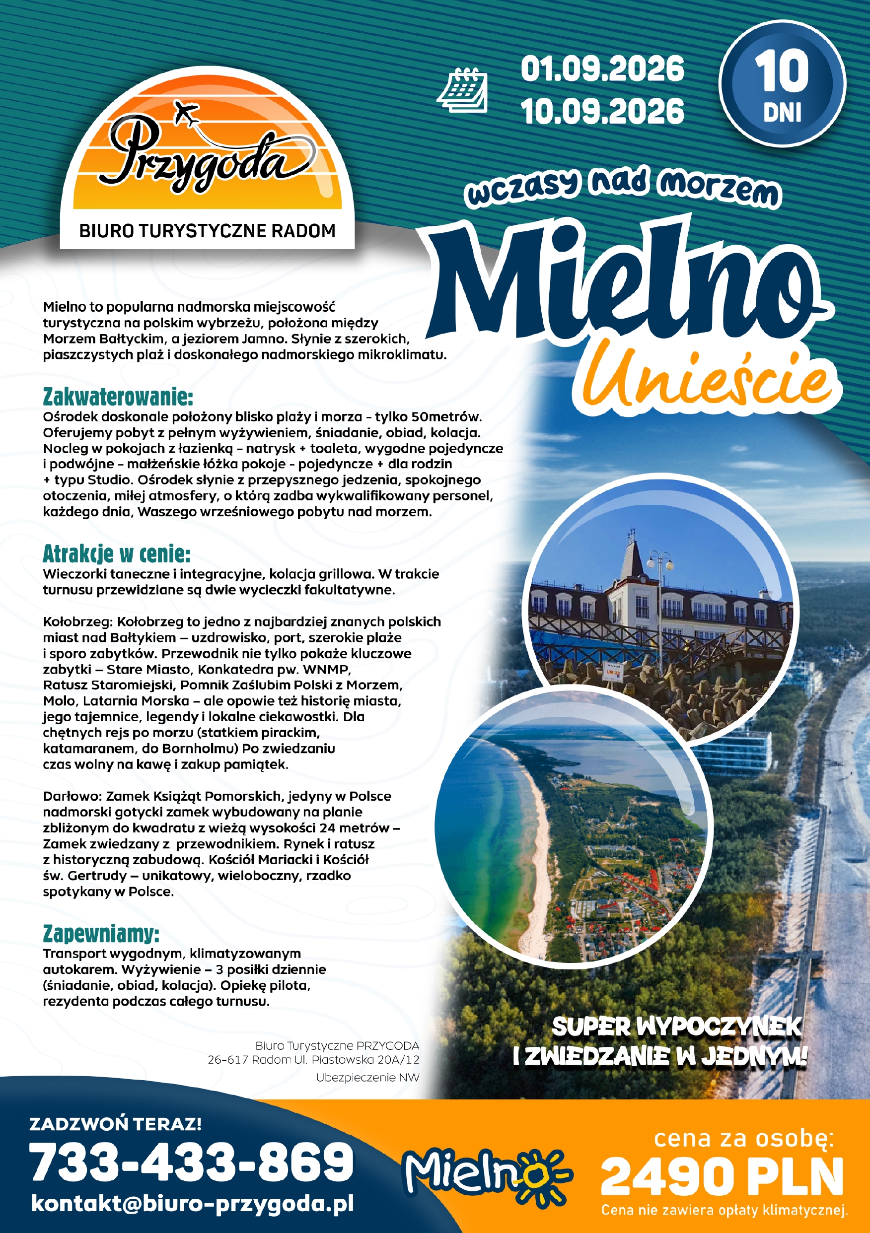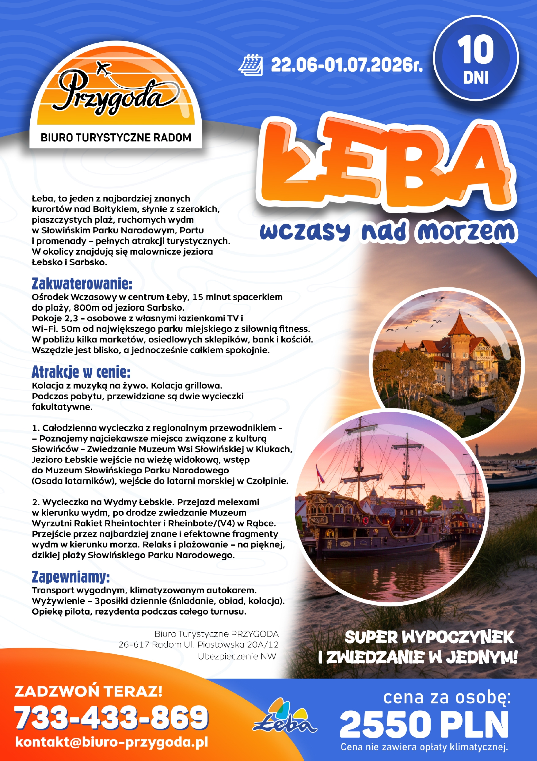 Szerokie plaże, ruchome wydmy, port i atrakcje Słowińskiego Parku Narodowego.